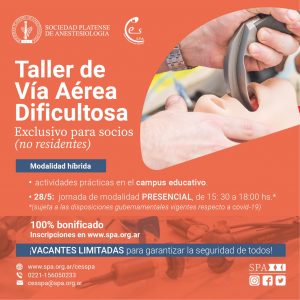 Sociedad Platense de Anestesiología > Secciones > Secretaría Científica > Taller de Vía Aérea Dificultosa para socios SPA
